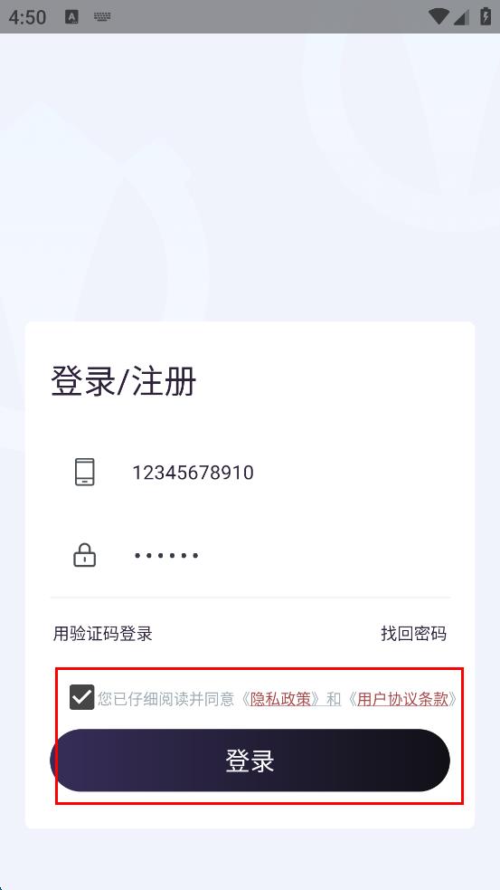 4、勾選您已仔細(xì)閱讀并同意隱私政策和用戶協(xié)議條款,然后點(diǎn)擊“登錄”按鈕即可。