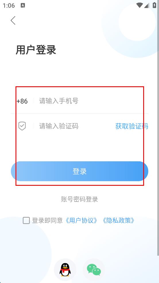 4、在用戶登錄界面,輸入手機(jī)號(hào),點(diǎn)擊“獲取驗(yàn)證碼”并輸入驗(yàn)證碼,最后點(diǎn)擊“登錄”按鈕。