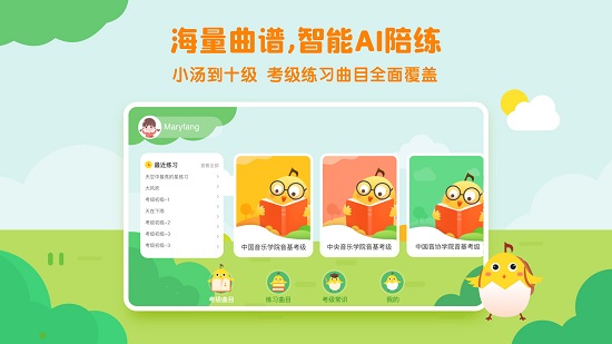 小湯到十級(jí)曲譜全覆蓋:小殼陪練擁有豐富的曲譜資源庫供用戶練習(xí),從入門曲譜集到十級(jí)考級(jí)曲譜全覆蓋,一站式練琴用這個(gè)APP就夠了。