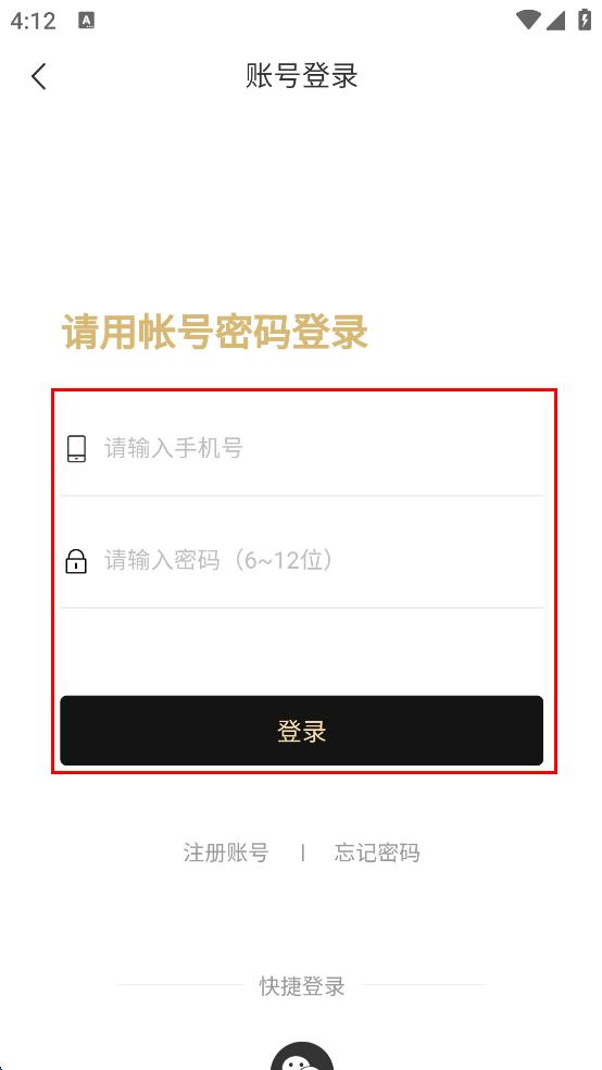 4、在賬號登錄頁面輸入手機號和密碼,點擊登錄按鈕完成登錄。