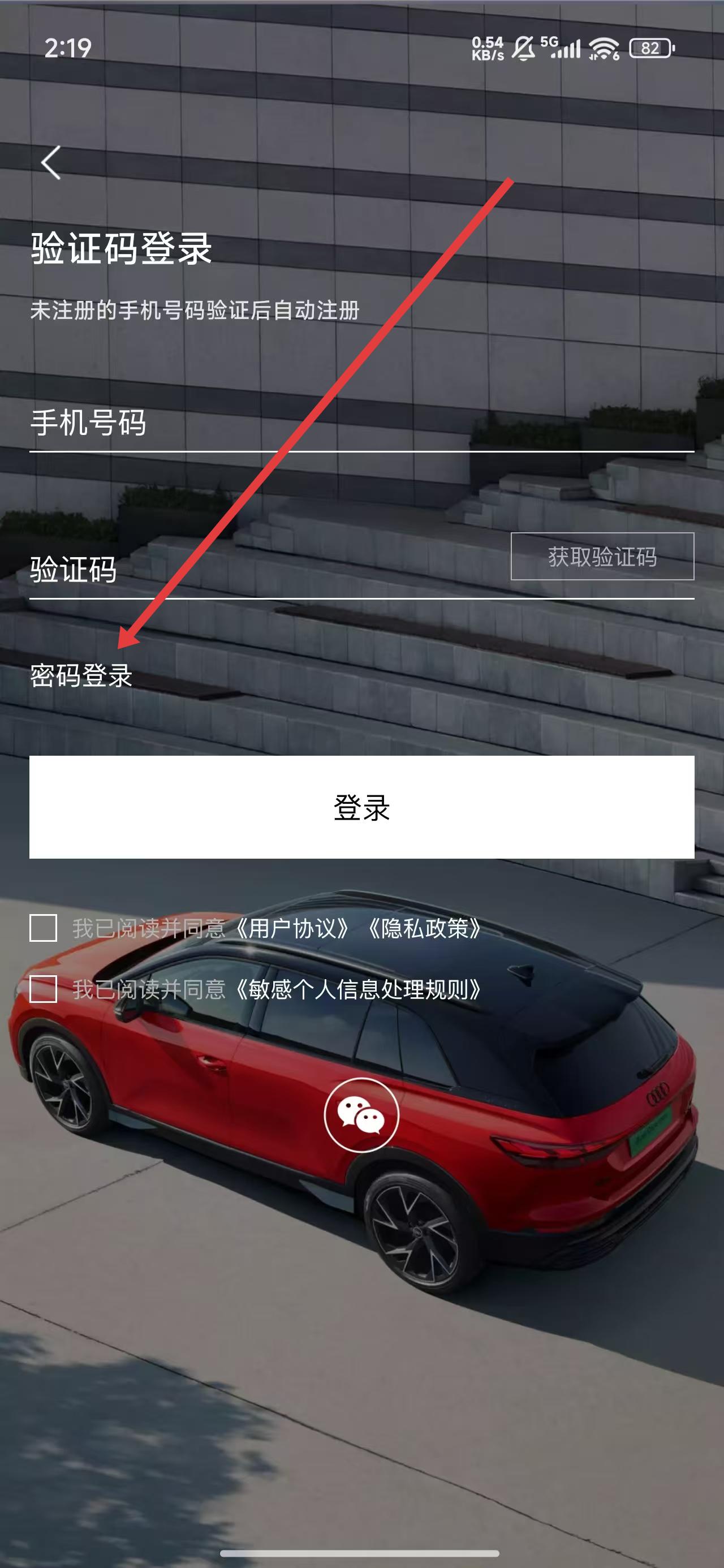 2、在進(jìn)入到驗(yàn)證碼登錄頁面中,還可以點(diǎn)擊密碼登錄按鈕,切換使用密碼登錄賬號(hào)。