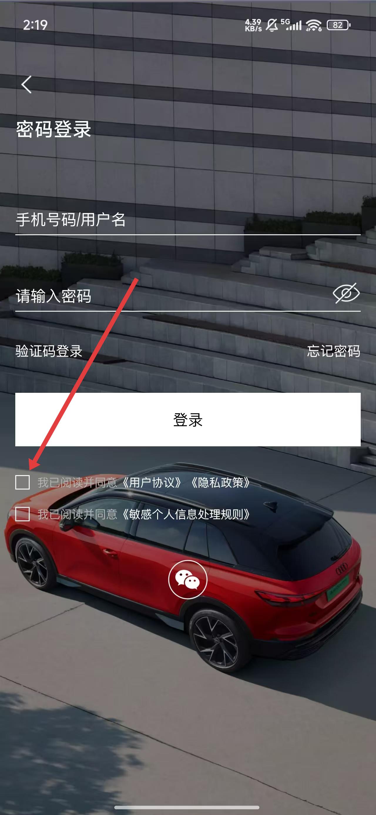 3、切換好登錄方式時(shí),在登錄前需先勾選下方兩個(gè)方框按鈕,點(diǎn)擊勾選表示我已閱讀并同意條款。