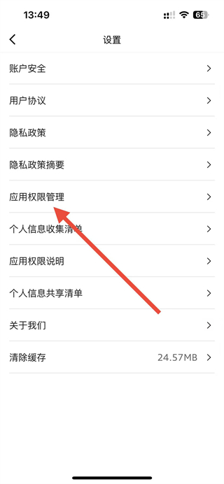 3、在設(shè)置頁面中,找到應(yīng)用權(quán)限管理選項(xiàng)并點(diǎn)擊,進(jìn)入對(duì)應(yīng)權(quán)限管理界面。