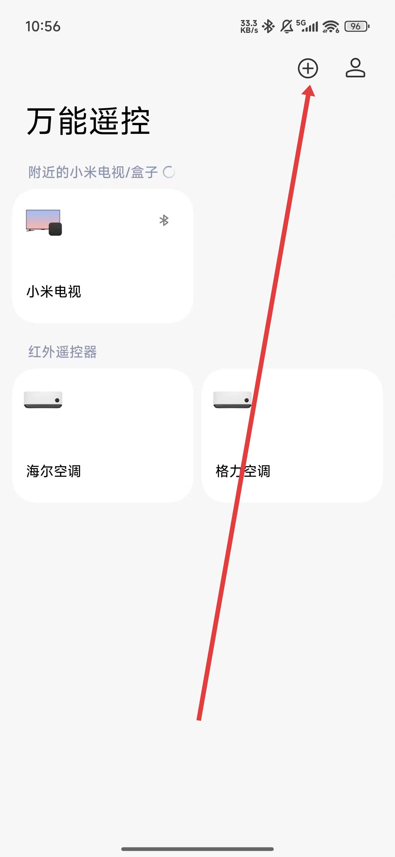 1、可以通過點(diǎn)擊首頁什么的加號(hào)按鈕,進(jìn)行添加遙控設(shè)備。