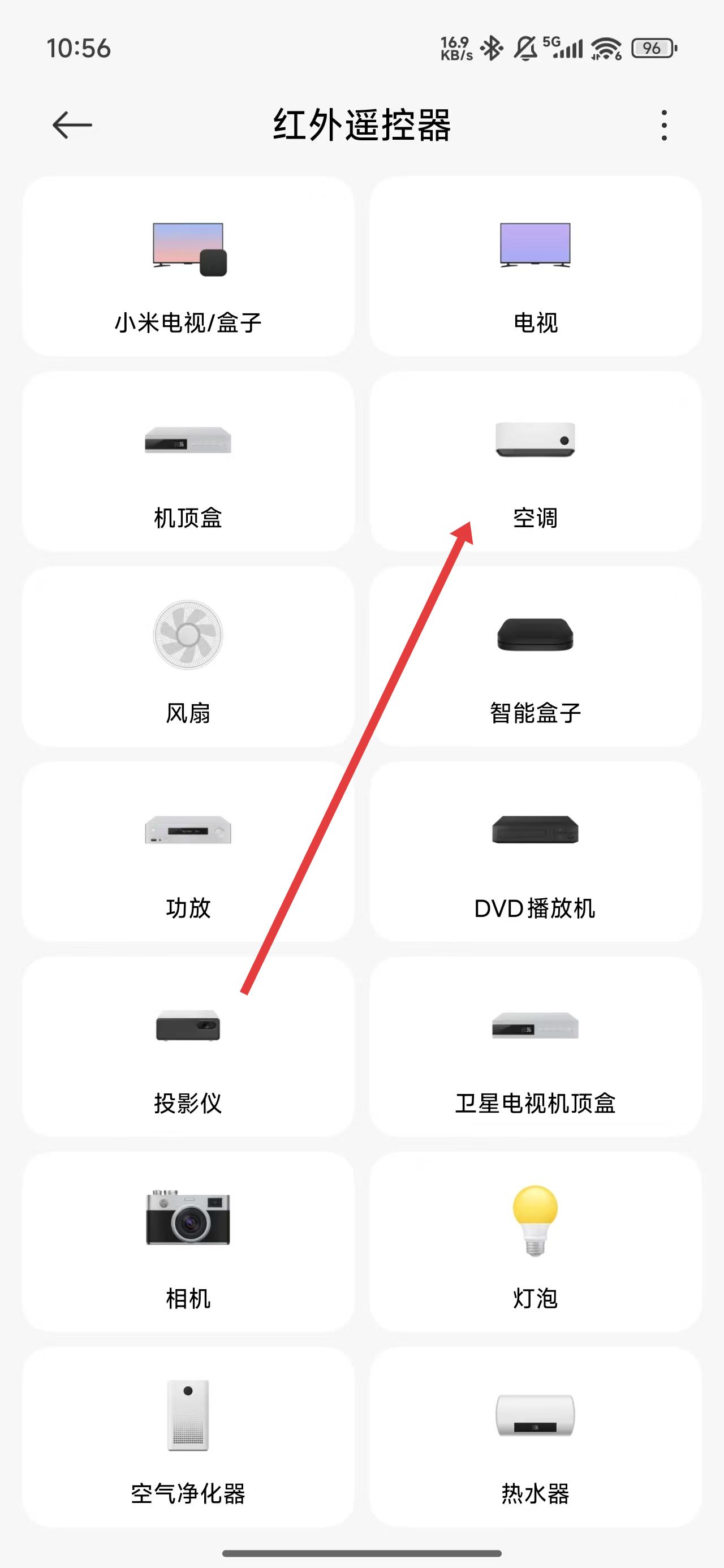 2、在進(jìn)入設(shè)備添加頁面,可以點(diǎn)擊選擇空調(diào)進(jìn)行添加相關(guān)遙控器。