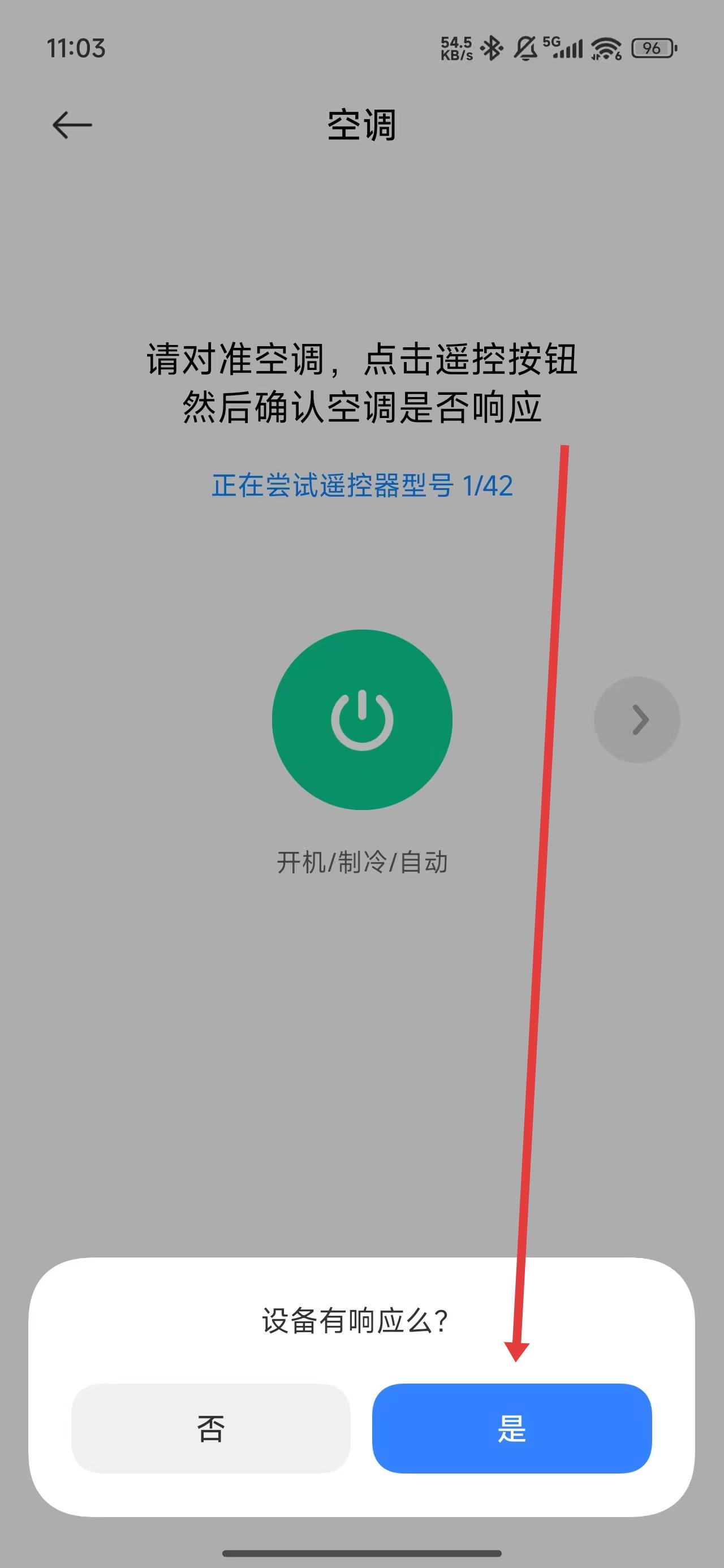 4、在進(jìn)入設(shè)備調(diào)試頁面,點(diǎn)擊開關(guān)按鈕查看是否響應(yīng),點(diǎn)擊是按鈕后即可進(jìn)行添加操作。
