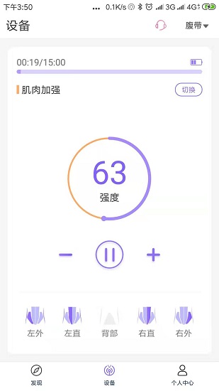 ech app通過(guò)控制ech ai智能健身康復(fù)儀通過(guò)ems及tens技術(shù)對(duì)腹部肌肉進(jìn)行刺激,緩解腰部疼痛、增強(qiáng)腹部肌肉、放松緊張肌肉、腹直肌分離等病癥??梢詭椭a(chǎn)后女性快速恢復(fù)腹部肌肉并達(dá)到健身塑形的效果。