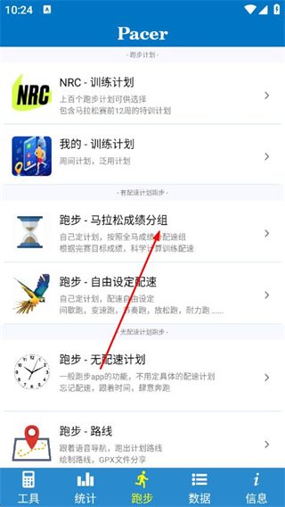1、打開Pacer APP,在跑步板塊選擇跑步訓(xùn)練計劃。