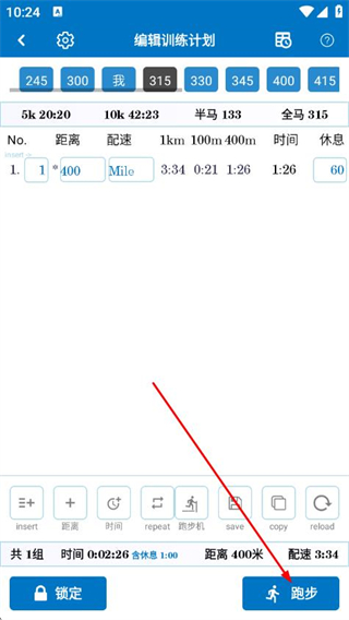 2、進入編輯訓(xùn)練計劃頁面后,點擊跑步。
