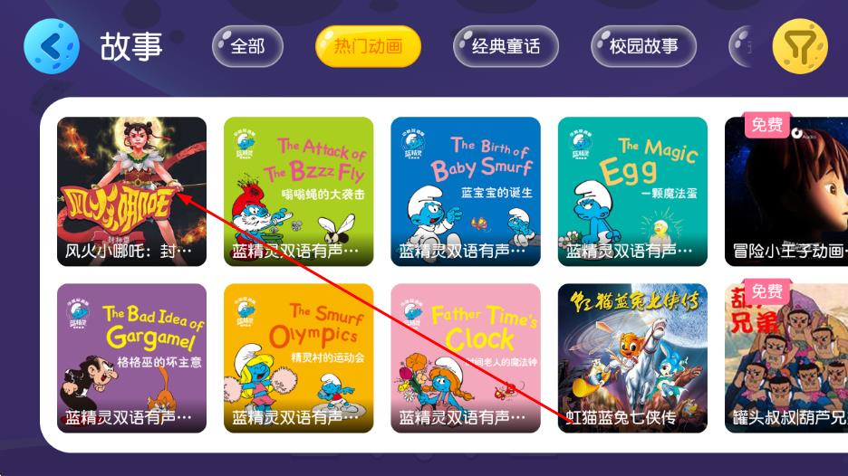 3、在“熱門動(dòng)畫”列表中,瀏覽并選擇想要聽的動(dòng)畫片,點(diǎn)擊風(fēng)火小哪吒:封神篇。