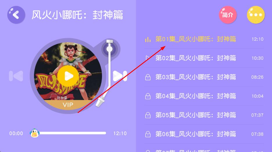 4、進(jìn)入動(dòng)畫片詳情頁(yè)面后,選擇想要聽的集數(shù),點(diǎn)擊即可開始播放。