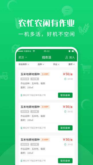 農(nóng)事幫app是農(nóng)事作業(yè)智能撮合軟件,提供農(nóng)戶一鍵呼叫農(nóng)機作業(yè)—耕田,播種,施肥,植保,收割,修剪,采摘,初加工,運輸?shù)确?,農(nóng)機手可以通過農(nóng)事幫軟件就近搶單,為農(nóng)戶和農(nóng)機手之間搭建一個信息對接平臺,推動農(nóng)機共享共用。