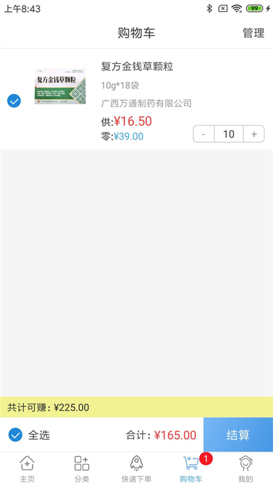 進(jìn)入購(gòu)物車選勾藥品,根據(jù)手機(jī)上快捷支付功能提交訂單