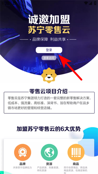 1、打開零售云管家APP后,我們需要點(diǎn)擊登錄的按鈕。