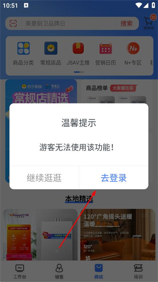 2、在彈出的溫馨提示框中,點(diǎn)擊去登錄選項(xiàng)。