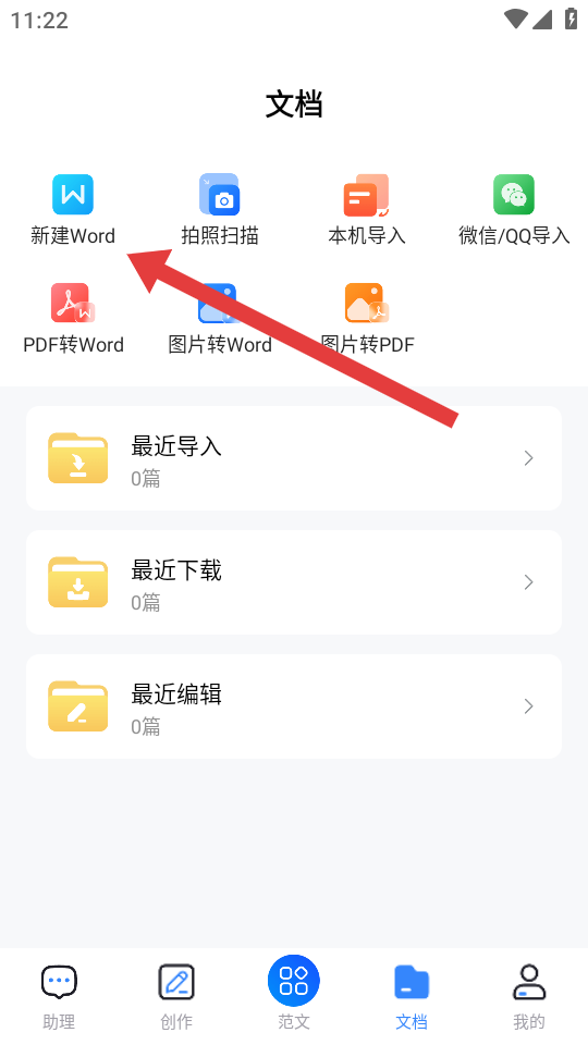 3、進入文檔欄目的界面,可以選擇點擊新建Word的選項,開始創(chuàng)建自己新的Word文檔進行使用。