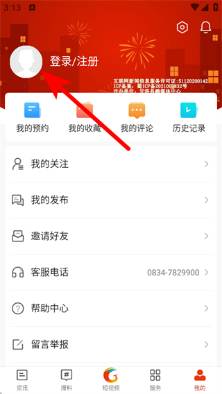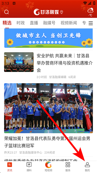1、打開甘洛融媒APP首頁,點擊底部我的,進入個人的頁面。