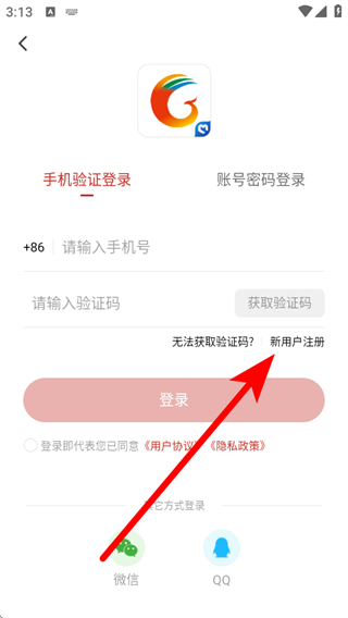 3、在登錄界面,點擊新用戶注冊,進入注冊信息填寫的頁面。
