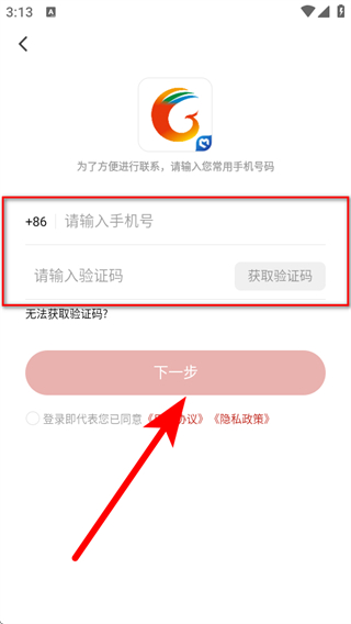4、需要輸入手機號碼,獲取并填寫驗證碼,點擊下一步完成操作。