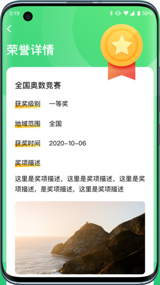 小學(xué)綜評學(xué)生端提供了基于手機(jī)操作的綜合素質(zhì)評價系統(tǒng)應(yīng)用。通過APP,學(xué)生可以快速記錄日常行為記錄,查看統(tǒng)計,榮譽(yù)等,學(xué)生端功能簡單明了,為學(xué)生提供全面而又快捷的綜合素質(zhì)評價系統(tǒng)應(yīng)用體驗,是整個綜合素質(zhì)評價系統(tǒng)重要一端。