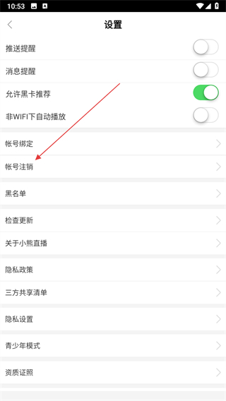 2、在設(shè)置界面中,找到帳號(hào)注銷選項(xiàng)并點(diǎn)擊,進(jìn)入帳號(hào)注銷頁面。