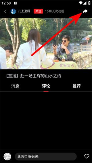 3、在播放的頁面,點(diǎn)擊右上角分享箭頭,彈出分享的選項(xiàng)。