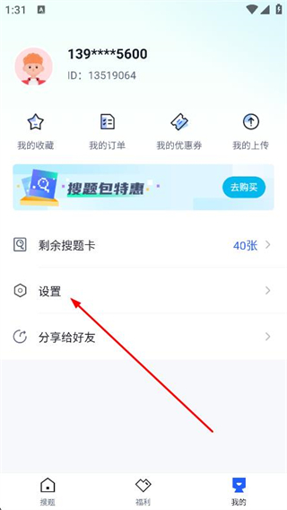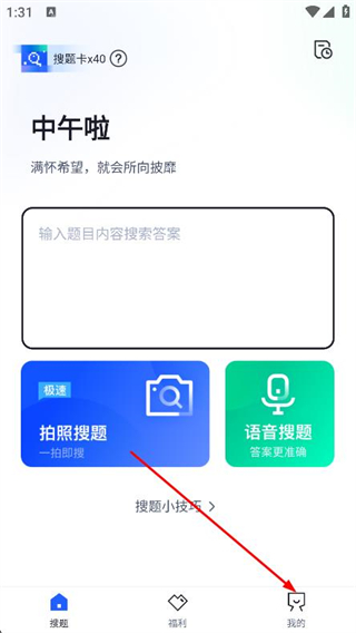 1、打開搜題俠,點(diǎn)擊底部導(dǎo)航欄右側(cè)的我的選項(xiàng)。