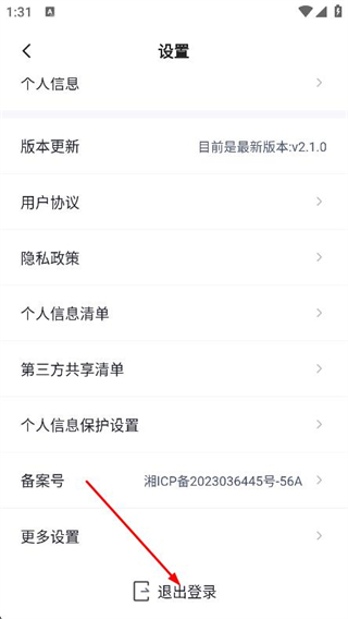 3、在設(shè)置頁(yè)面,找到并點(diǎn)擊底部的退出登錄按鈕。