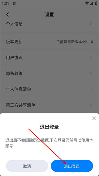 4、在彈出的提示框中,點(diǎn)擊退出登錄即可退出賬號(hào)。