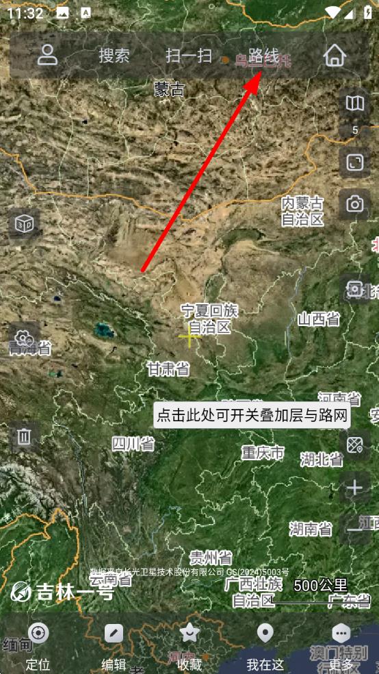 1、打開奧維互動地圖點擊上方路線按鈕進入路線規(guī)劃相關界面。