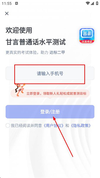 3、在登錄/注冊(cè)頁面,填寫手機(jī)號(hào),點(diǎn)擊登錄/注冊(cè)。