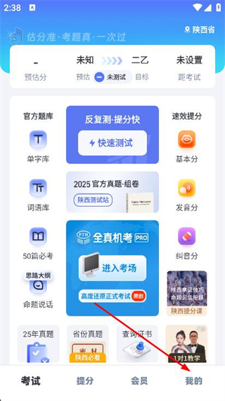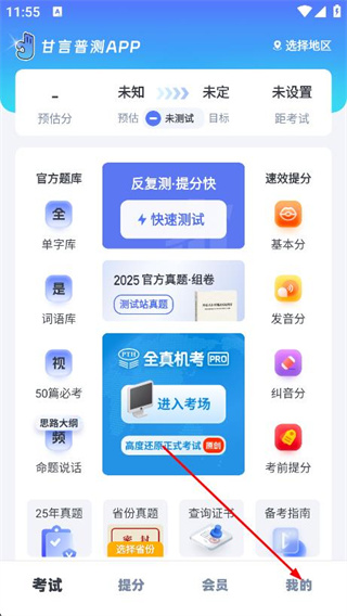 1、打開普通話水平測(cè)試,點(diǎn)擊底部導(dǎo)航欄我的。