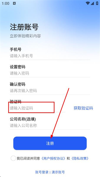 3、填入收到的短信驗(yàn)證碼,點(diǎn)擊注冊(cè)按鈕即可完成賬號(hào)注冊(cè)。