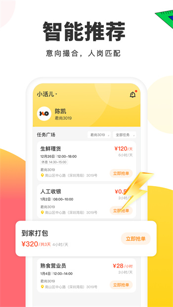 ◆專業(yè)的智能用工服務(wù)軟件,可以隨時(shí)發(fā)布用工任務(wù),幫助用戶輕松一鍵搞定各種用工;