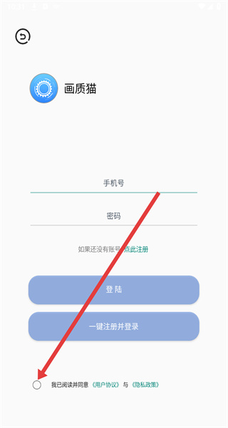 2、在登錄賬號前,需要先點擊勾選我已閱讀并同意按鈕后進行操作。