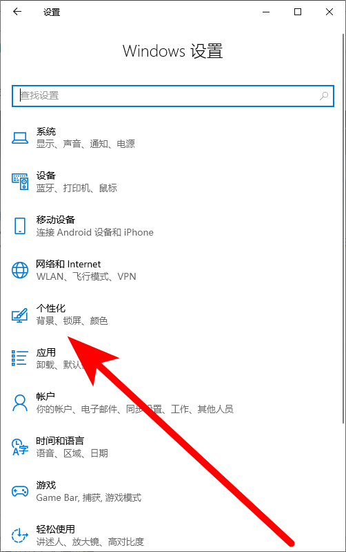 2、在Windows設(shè)置界面中,點擊個性化選項,進(jìn)入個性化設(shè)置頁面。