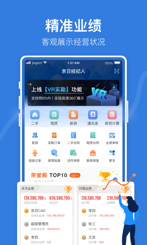 實(shí)時(shí)跟進(jìn)房客信息,捕捉最新的房客動(dòng)態(tài)。精準(zhǔn)展示經(jīng)紀(jì)人業(yè)績,反饋經(jīng)營狀況。