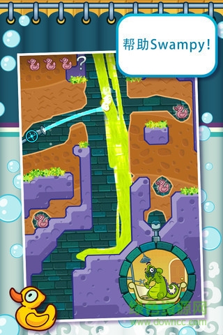 第一關(guān),只要直接劃過泥土讓水通過小黃鴨到達(dá)浴缸就好。