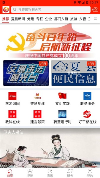 智慧夏都是夏縣地區(qū)推出的一款綜合融媒體服務(wù)軟件,擁有新聞資訊、電視直播、民生服務(wù)、留言互動(dòng)、政務(wù)服務(wù)等諸多功能,不僅方便群眾了解最新的新聞?wù)撸€上辦理業(yè)務(wù),同時(shí)還是夏縣對(duì)外宣傳,服務(wù)群眾的重要平臺(tái)