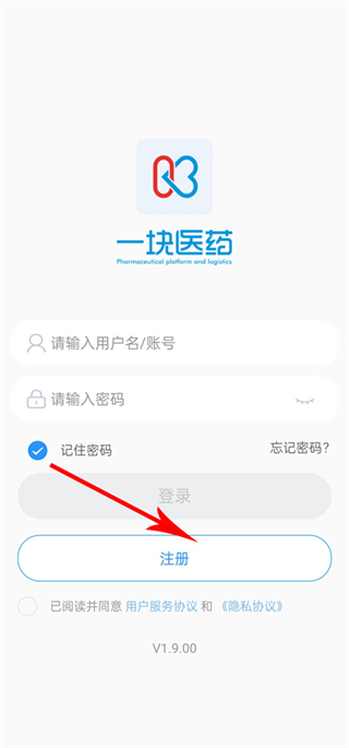 1、打開一塊醫(yī)藥APP,在登錄頁(yè)面點(diǎn)擊注冊(cè)。