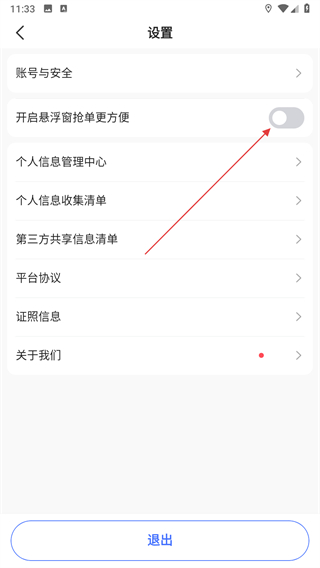 3、在設(shè)置頁面點(diǎn)擊開啟懸浮窗右側(cè)的開關(guān)按鈕。
