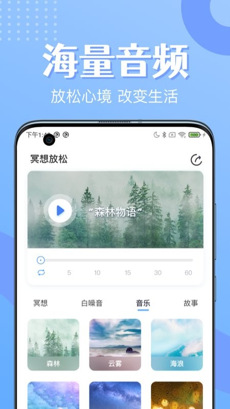 海量音頻:上百種專業(yè)冥想放松練習(xí)、睡眠白噪音、睡前故事,幫助你找回內(nèi)心平靜,夜晚安然入睡