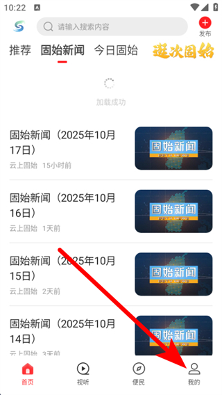 1、在云上固始首頁,點(diǎn)擊底部我的按鈕,進(jìn)入個人的頁面。