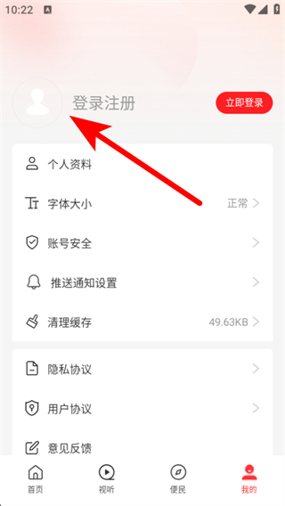 2、在個人的頁面,點(diǎn)擊登錄注冊按鈕,進(jìn)入登錄注冊的界面。