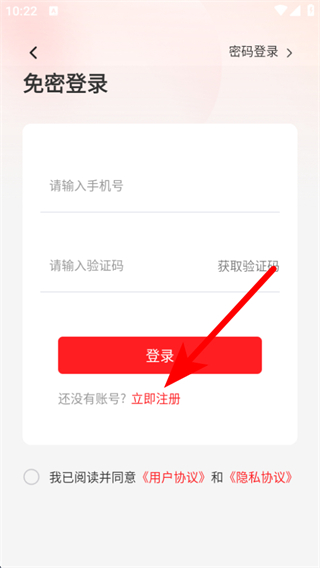 3、在登錄注冊的界面,點(diǎn)擊立即注冊按鈕,進(jìn)入注冊的頁面。