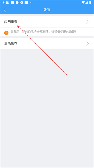 3、在設置界面,點擊應用重置選項,此時會彈出確認清除數(shù)據(jù)的提示框。