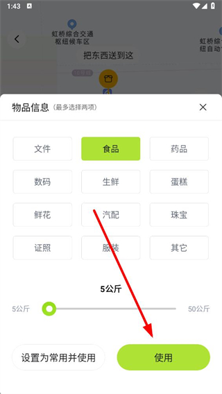 3、在物品信息頁(yè)面,選擇要寄送的物品類(lèi)型,點(diǎn)擊使用按鈕。