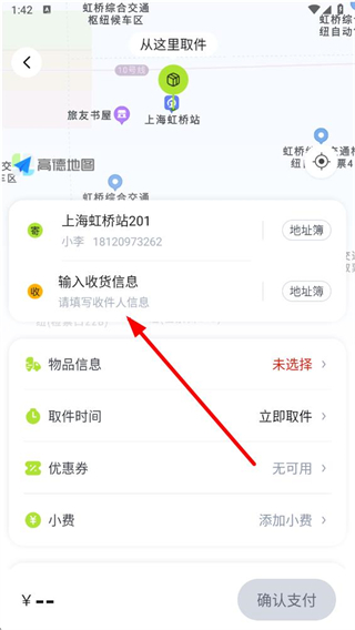 1、打開(kāi)裹小遞app,點(diǎn)擊輸入寄件信息,填寫(xiě)寄件地址等相關(guān)信息。