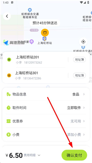 4、確認(rèn)所有信息無(wú)誤后,點(diǎn)擊確認(rèn)支付按鈕,完成下單操作。