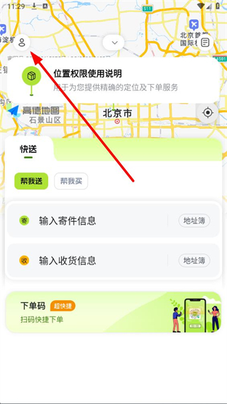 1、打開(kāi)裹小遞APP,點(diǎn)擊頁(yè)面左上角的頭像。